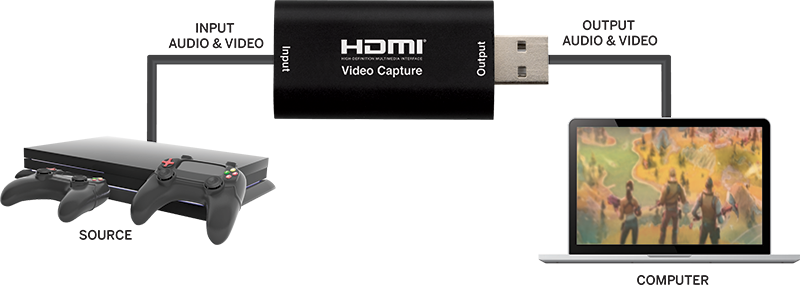 The Vanco HDMI-USB Capture is a device that allows an HDMI source to be streamed or recorded, resulting in converted content that can be viewed on computers and other commonly found capture software locally and/or remotely.