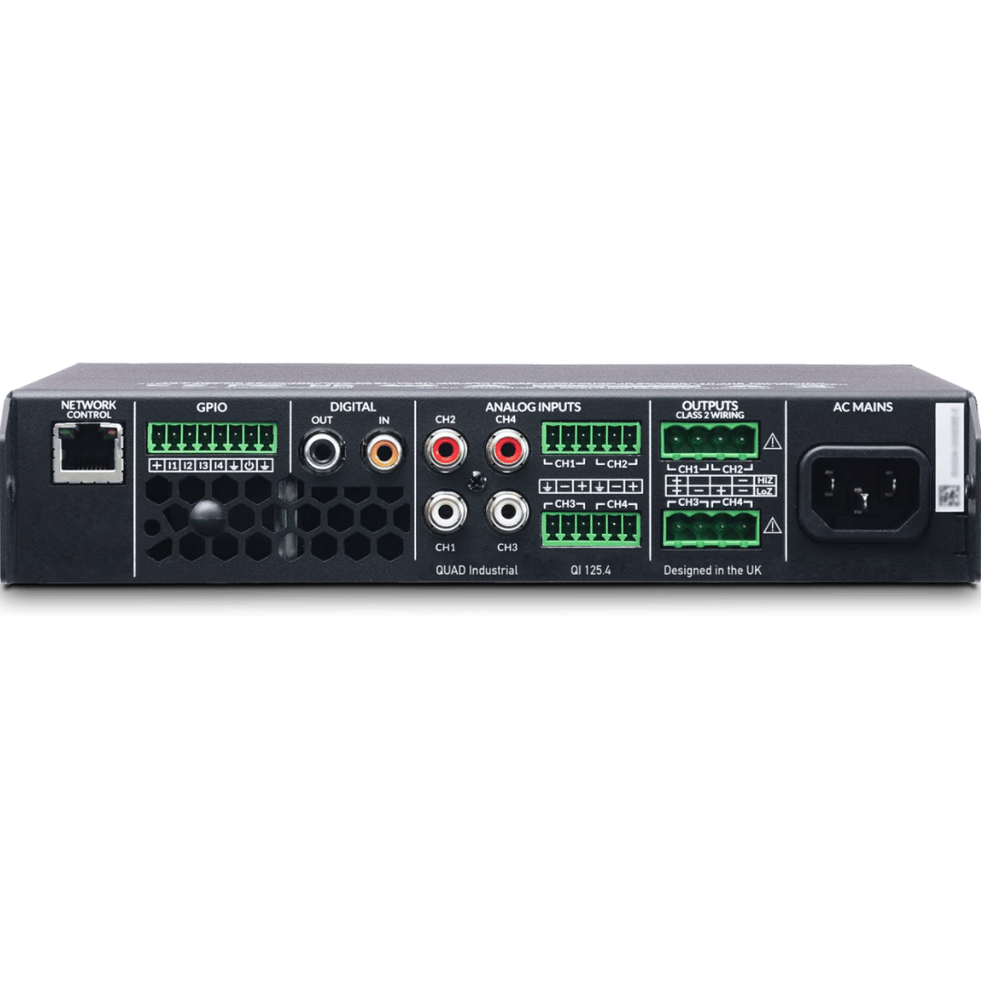 Housed in a slim half-rack, 1U chassis, QI 125.4 is easy to deploy in equipment racks, cupboards, under desks or wall-mounted locations where space is limited. It delivers exceptional versatility, offering four channels of low-impedance output or two high-impedance 70 V / 100 V outputs, allowing a single amplifier to support both Lo-Z and Hi-Z loudspeaker systems.